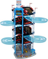 Детският паркинг от серията "Bosch Service" на "Klein" ще се хареса на всички малки, бъдещите шофьори. Той е с височина 85 cm и разполага с 5 нива, на които има множество паркоместа, с 2 успоредни състезателни рампи, двуместен асансьор и бензиностанция. Но това далеч не е всичко, към комплекта са включени 2 колички и множество аксесоари, с които игрите да бъдат още по-вълнуващи. Малчуганите ще могат да се забавляват с часове, докато се състезават по рампите със своите автомобилчета от най-горното та чак до най-долното ниво. Като след всяко спускане ще могат да качвате количките със специалния двуместен ... |