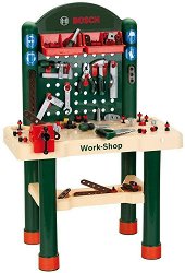 За малките майстори, които мечтаят един ден да използват различни истински машини и инструменти от "Klein" предлагат на вашето внимание изключително прецизната детска работилница "Work-Station". Тя е част от серията "Bosch-mini", където ще откриете още комплекти и аксесоари, които са реалистични копия на истинските инструменти "Bosch". Комплектът се състои от работен тезгях на 2 нива, менгеме, трион, чук, нивелир, отвертка, пила, каска, ръкавици, очила, антифони и още много други инструменти и аксесоари, с които малчуганите ще се научат да завинтват, развиват, сглобяват и свързват ... |