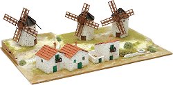 Диорама в испански стил на "Domus Kits", състоящ се от 3 мелници и 3 помощни сгради. Моделът е направен от картон, върху който се залепват и изграждат стените и покривите. Размери на модела: 630 / 470 / 300 mm. Мащаб на модела: 1:87. ... |