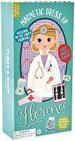 Комплектът на Floss and Rock се състои от двустранен декор, магнитна дървена кукла - Флоренция и магнитни елементи във формата на дрехи и аксесоари, с които вашето момиченце ще може да облича куклата като доктор, медицинска сестра, пациент и други. Като допълнение към куклата има включена стойка, благодарение на която Флоренция ще стои изправена по време на игра. Играта с комплекта развива творческите способности, фината моторика и логическото мислене на децата. Комплектът е изработен от рециклирани материали, а картинките му са направени със соево мастило. Кутията на куклата е рециклируема. Куклата е с височина 23.5 ... |