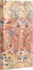 Корицата на тефтера Kara-Ori от колекцията Japanese Kimono на Paperblanks е вдъхновена от дизайн на кимоно от периода Едо (1615-1868). Караори се отнася конкретно до изящно бродираните традиционни женски кимона, с което е известен театъра Но. Те се смятат за едни от най-красивите театрални костюми в света, благодарение на театралния стил от японската аристокрация както на зрителите, така и на изпълнителите. Върху него са изобразени хармонични цветя, използвани са балансирани цветове и са добавени изключителни детайли, за да се постигне този въздействащ ефект на това японско изкуство. Тефтерът Kara-Ori се отличава с ...