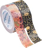 Декоративните самозалепващи ленти на Paperblanks се предлагат в комплект от 2 ролки с различни цветни десени, а именно Kara-Ori и Karakusa от колекцията Japanese Kimono. Дизайнът им изобразява хармонични цветя, балансирани цветове, както и изключително прецизни детайли, които крият въздействащия ефект на японското кимоно. Те са изработени от автентичната японска уаши лента, метално фолио и лак. Могат да бъдат използвани както заедно в комбинация, така и по отделно. Лепящите ленти са подходящи за апликиране и декориране на различни повърхности. Те ще разнообразят страниците на вашия тефтер или планер, като внесат ...