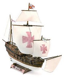 Умален модел на тримачтов ветроходен кораб - Пинта. Това е третият кораб от експедицията на великия мореплавател Христофор Колумб. Оригинално описание: Third ship of Columbu’s expedition, Pinta was a square sails caravel. The sails consisted of a square foresail and great mainsail, while the mizzenmast, supported a long yard for lateen triangular sail. It had a poop quarterdeck and, unlike the sister-ship Nina, also forecastle. The Pinta was the fastest of the three ships, confirming the logbooks, which indicated that this caravel was during the voyage often ahead of the two other ships. Комплектът съдържа: ... |
