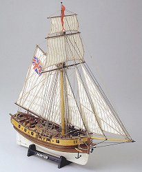 Умален модел на ветроходен катер Hunter, построен за британския флот през втората половина на 17 век. Катера е бил използван и за брегова охрана. Оригинално описание: British armed cutter 1797 The Hunter is a well equipped cutter, built for the British Navy in many, more or less similar copies, in the second half of the seventeenth century, to face the smugglers, who, incidentally, were the first to use this type of ship (it seems that the English shipyards built them in couples: one for the smugglers and one for the Customs…). Of course the Hunter was used also as coast-guard and for military functions of port survey, ... |
