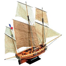 Умален модел на малък платноход, използван от френски пирати. Корабът има три мачти. Построен е от Денис де Дюнкерк и излиза в открито море през 1776 г. Корабът е пленен и превзет от англичани на 17 юни 1778 по време на битка. Оригинално описание: The lugger was a kind of ship used by the French pirates of the Revolution and of the Empire. It is a type of ship equipped as a “bragozzo”, with 3 masts, a very long bowsprit, several jibs, topsails and some foretopsails. It was built by the Denys de Dunkerque and launched in 1776. The career of this ship was short because it was captured by the English on 17th June 1778 ... |