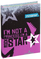 Тефтерът "Rockstar" от "Mitama" има подплатени корици от полиестер. Листовете в него са карирани, а линиите са в различни цветове. Първите листове на тефтера са снабдени с място за персонализиране и със самозалепващи забавни стикери. Всички останали страници са наименувани (на италиански език) с 12 -те месеца на годината и дати, а някои от тях са декорирани с идеи, полета за важни съобщения и телефонен азбучник. Тефтерът разполага с приблизително 176 листа и текстилен разделител. ... |