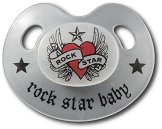 Rock Star Baby е линия от висококачествени бебешки продукти, създадени от барабаниста на рок групата Bon Jovi - Тико Торес. ... Залъгалката от серията Сърце с крила на Rock Star Baby е с ортодонтична форма, която осигурява правилната захапка и цялостното развитие на езика и челюстта на бебето. Тя пасва оптимално добре на устната кухина на детето, задоволявайки естествения му сукателен рефлекс. Биберонът на залъгалката е изработен от мек силикон, който е без цвят и мирис, и е нежен към бебешките венци. А интересния рок дизайн на залъгалката оставя достатъчно пространство около нослето, като по този начин не затруднява ... |