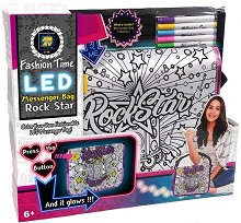 Чантата е изработена от текстил и разполага с 1 отделение и 1 преден джоб, които се затварят с ципове. Върху нея има илюстрация на музикални колони, инструменти и надпис Rockstar, която може да се оцвети с включените специалните маркери за текстил в 5 цвята. Чантата притежава LED светлини, които се включват и изключват с помощта на малко копче. Тя е подходяща за деца над 6-годишна възраст и е чудесен избор за подарък за момиче. LED светлините на раницата работят с 2 батерии 1.5 V AA, които може да закупите отделно. Чантата е с приблизителни размери 27.5 / 5 / 23 cm. ... |