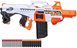 Приготви се за мега битка с бластера "Ultra Select" от "Nerf"! Комплектът съдържа бластер и 20 меки стрелички в 2 различни цвята. Бластерът разполага с релса за зареждане и опция за автоматично изстрелване. Извади релсата, зареди 10 стрелички, върни релсата и стреляй! Организирай стрелба по време на игра с приятели и се забавлявай! Бластера може да изстрелва стрелички на разстояние до 36 m. Бластерът работи с 6 батерии Батерии 1.5V C, които можете да закупите отделно. ... |