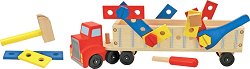 Дървеният комплект от "Melissa & Doug", ще донесе часове забава на вашия мъник. Комплектът се състои от тир с ремарке и множество аксесоари като - чук, отвертка, гаечен ключ, винтове и гайки. Ремаркето е изработено с дупчици, в които детето може да поставя винтовете. Така, докато се забавлява да стори, малчуганът ще научи различните видове инструменти, цветовете и ще развие своята координация, логика, моторика, сръчност и въображение. Тирът е с приблизителни размери 13.2 / 53.3 / 8.8 cm. ... |