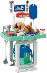 С ветеринарния център от "Ecoiffier" вашето дете ще може да прегледа своя плюшен домашен любимец. За тази цел в комплекта е включено всичко необходимо - операционна маса, рентген, термометър, чукче, спринцовка, система, стетоскоп, както и предпазна яка за кученцето. А когато малкия ветеринар е готов с прегледа, детето ще може да използва душа, за да "изкъпе" сладкото кученце. Но това не е всичко. Към комплекта е включена и преносима клетка. Така малчуганът ще може да носи любимата си плюшена играчка навсякъде. Ветеринарният център е с приблизителни размери 40.5 / 61 / 28 cm. ... |