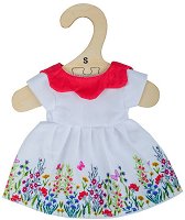 Роклята от "Bigjigs Toys" е подходяща за кукли до 25 cm. Тя е изработена от текстил. Рокличката е бяла и има червена яка, а на поличката ѝ има цветни цветчета и пеперуди. ... |