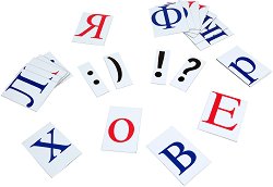 Îáðàçîâàòåëíèÿò êîìïëåêò îò ìàãíèòíè áúëãàðñêè áóêâè è ïðåïèíàòåëíè çíàöè å ñúçäàäåí ñïåöèàëíî çà äåöàòà â ïðåäó÷èëèùíà ãðóïà è 1. êëàñ. Òîé ùå ïîìîãíå íà ìàë÷óãàíèòå äà íàó÷àò ëåñíî áúëãàðñêàòà àçáóêà è ñ íåãî ùå ìîãàò äà ñúñòàâÿò äóìè, ôðàçè è êðàòêè èçðå÷åíèÿ, êàòî ãè ïîäðåæäàò íà ìàãíèòíà äúñêà èëè íà ïîâúðõíîñòòà íà õëàäèëíèê. Áóêâèòå â êîìïëåêòà ñà îöâåòåíè ñ ðàçëè÷íè öâåòîâå ñïðÿìî çâóêîâåòå, íà êîèòî ñå ðàçäåëÿò - ãëàñíèòå ñà îöâåòåíè â ÷åðâåíî, ñîíîðíèòå ñúãëàñíè ñà îöâåòåíè â ñèíüî. Êîìïëåêòúò ñå ñúñòîè îò îáùî 98 îòäåëíè öâåòíè åëåìåíòà. Îò òÿõ ìàëêèòå áóêâè ñà 59 íà áðîé, êàòî îò áóêâèòå - à, á, â, ã, ä, å, ...